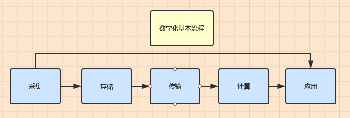 數字化包括數據的采集、傳輸、存儲、計算和應用,是指將各類復雜多變的信息轉變為可以度量的數據,并加以處理的過程。