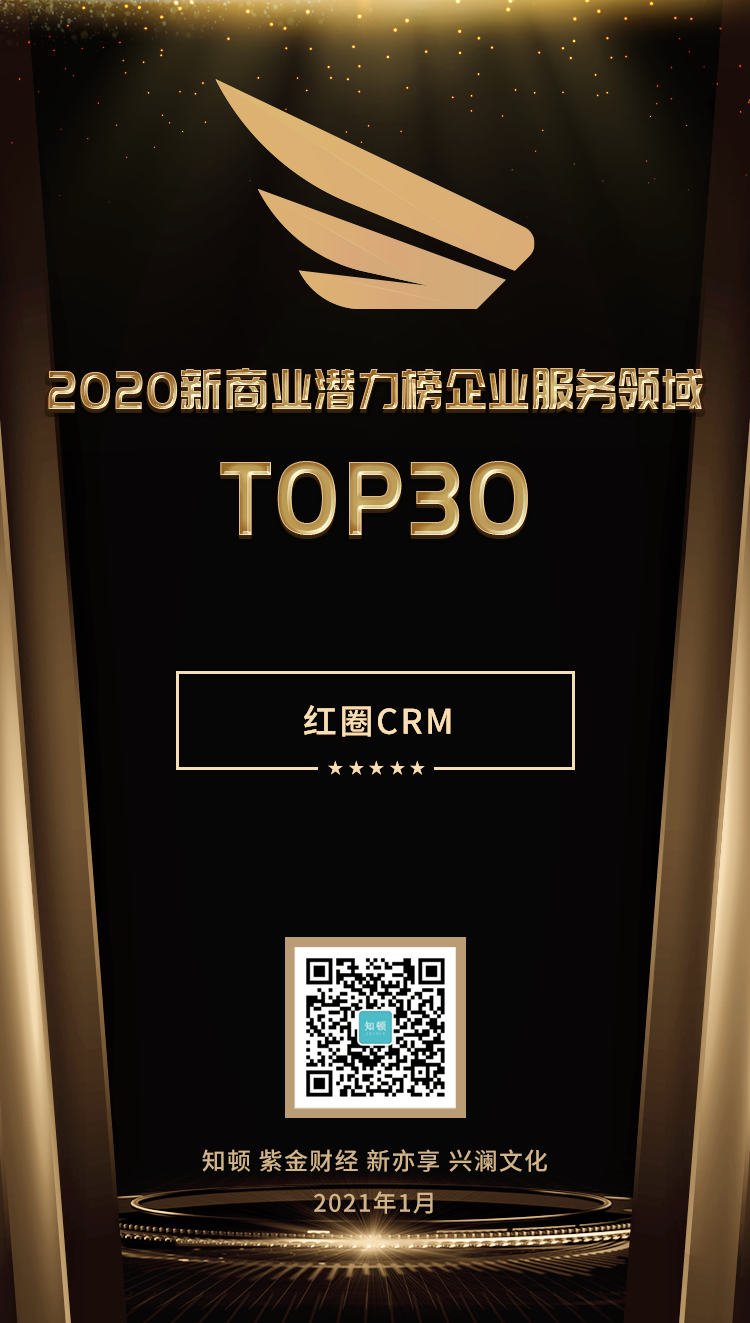 經(jīng)過層層篩選,最終,紅圈CRM 創(chuàng)始人&CEO 劉學臣入選 “2020 新商業(yè)潛力榜人物TOP20”,紅圈 CRM 入選“ 2020 新商業(yè)潛力榜企業(yè)服務領域 TOP30”。