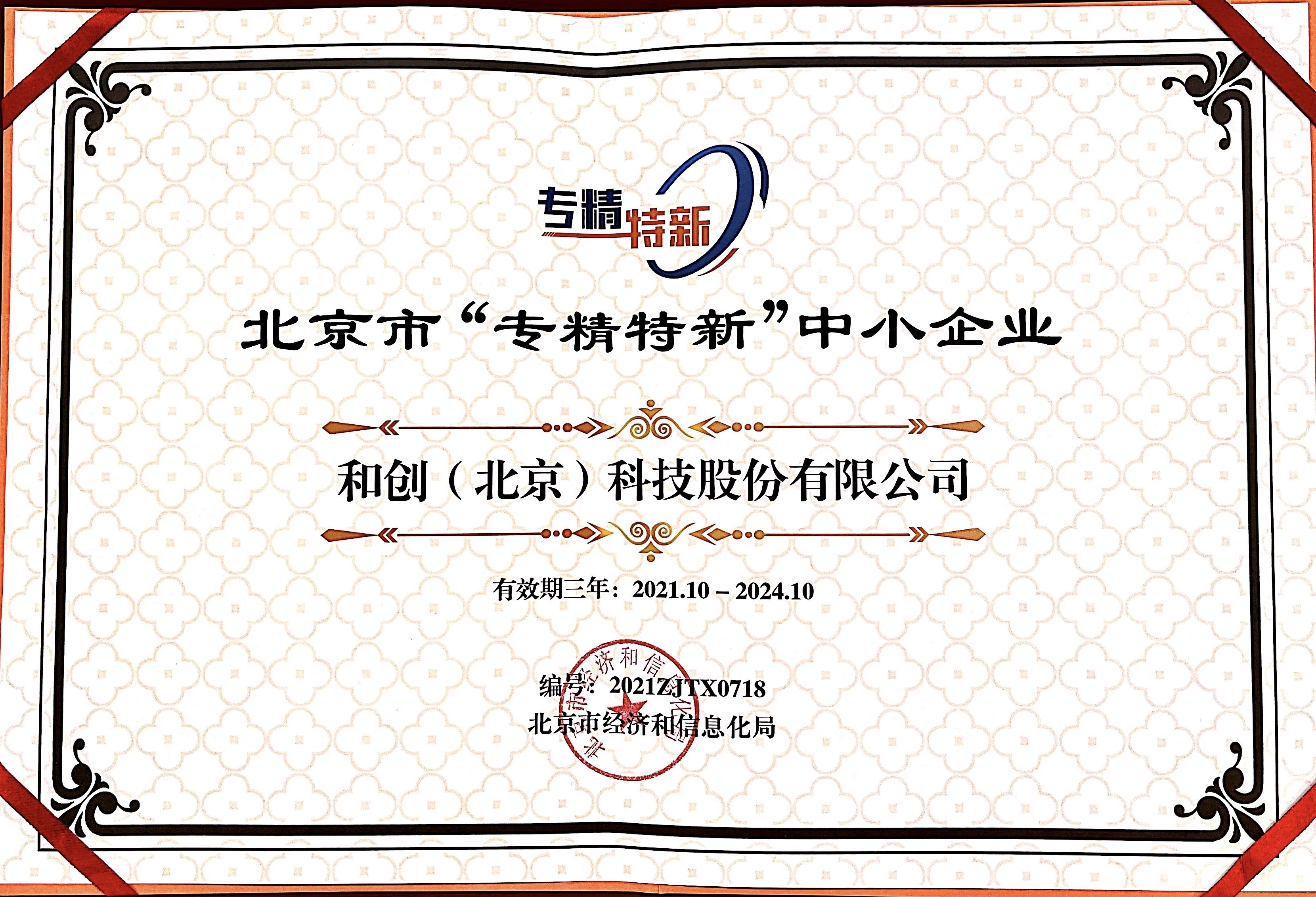 2021 年 10 月 29 日,北京市經(jīng)濟和信息化局將北京市 2021 年度第六批擬認定“專精特新”中小企業(yè)名單予以公示,和創(chuàng)(北京)科技股份有限公司榮登榜單,此次公示期為 10 月 29 日至 11 月 4 日,目前已通過公示期。 根據(jù)北京市經(jīng)濟和信息化局的評審程序的有關(guān)規(guī)定,對于公示期無異議的,認定為“北京市‘專精特新’中小企業(yè)”。