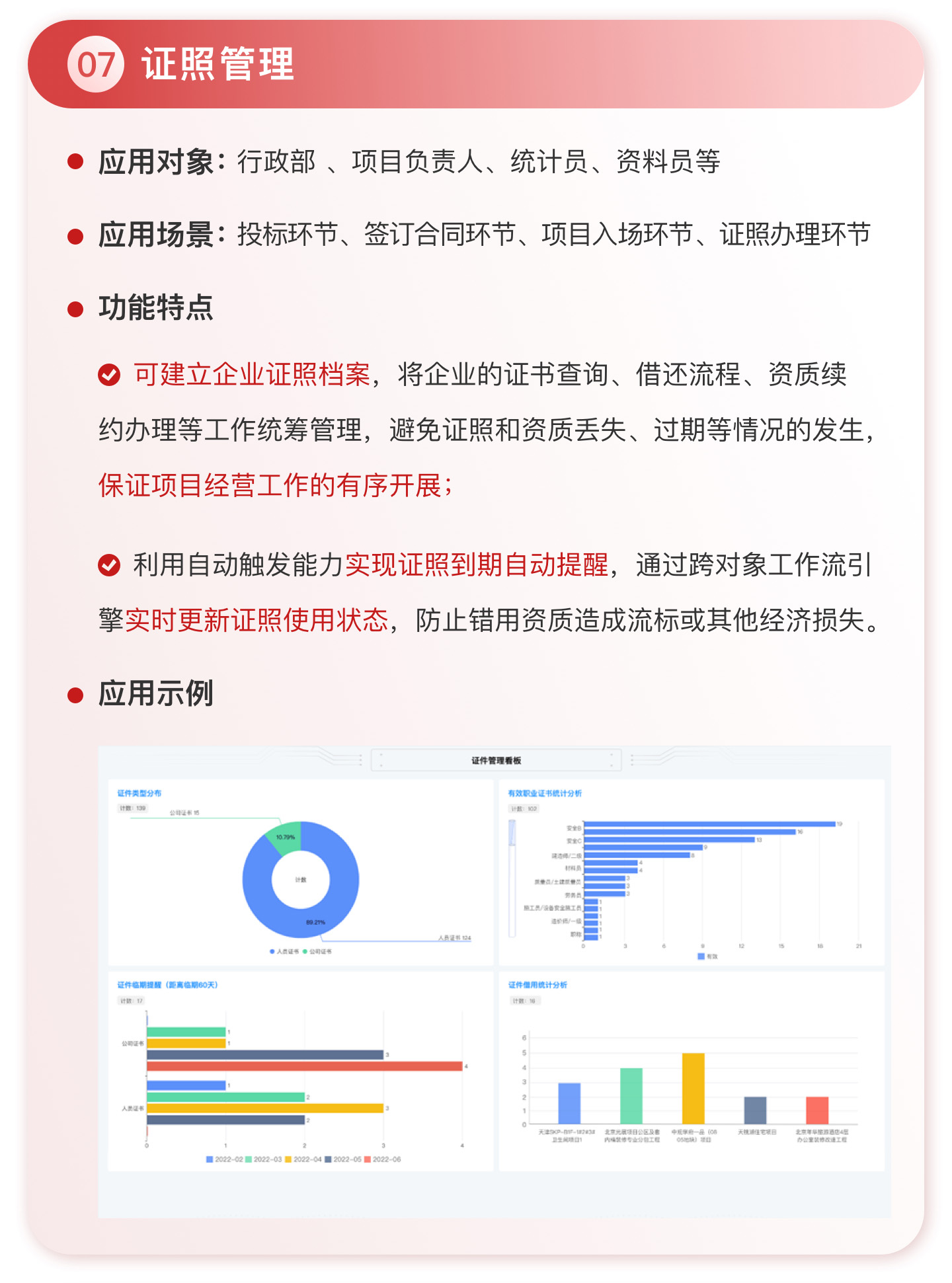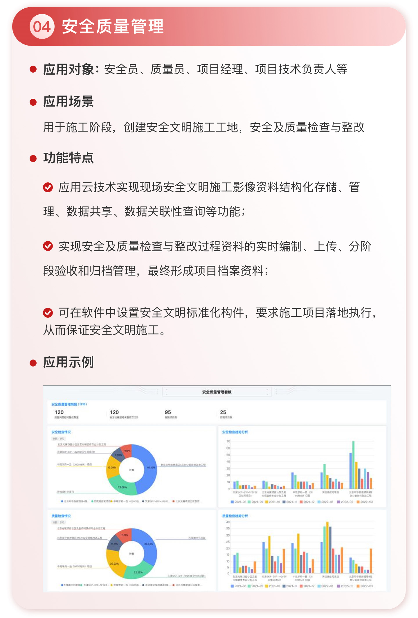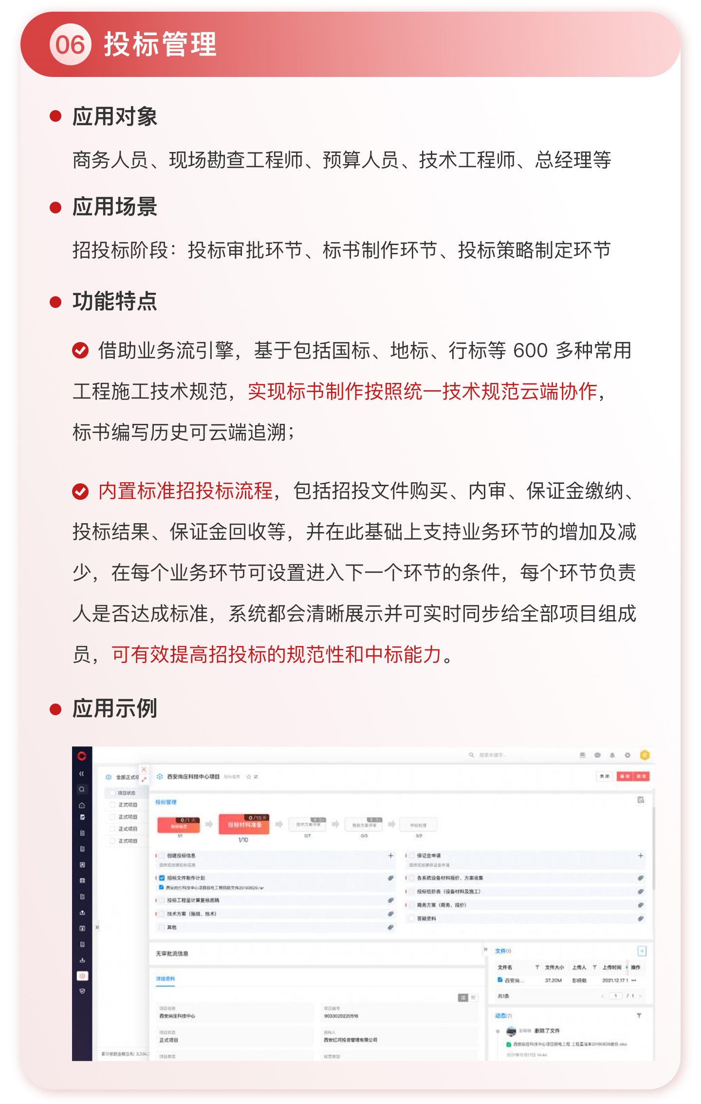 此外,紅圈系統(tǒng)能夠為建筑工程企業(yè)決策者實時呈現(xiàn)動態(tài)數(shù)據(jù)、提供智能數(shù)據(jù)分析,讓管理者實時了解項目的整體運營效率及效益是否達標、經(jīng)營風險是否可控,滿足建筑工程企業(yè)數(shù)字化管理升級的需求,提升企業(yè)經(jīng)營管理能力,實現(xiàn)工程項目施工全生命周期的降本增效。該產(chǎn)品主要應用于產(chǎn)值為 5,000 萬-20 億的建筑工程行業(yè)企業(yè)。