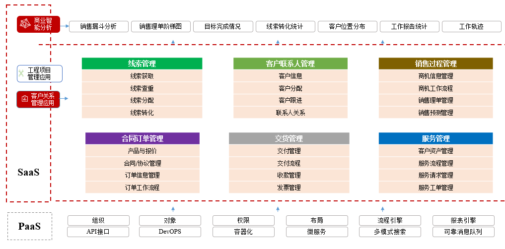 紅圈 CRM+是一款集合了工程項目管理功能和客戶關系管理功能的 SaaS 產(chǎn)品,以自有底層 PaaS 平臺為依托,以業(yè)務實踐經(jīng)驗為指導而構(gòu)建。產(chǎn)品以助力企業(yè)級客戶提效率、降風險、控成本、管過程、增利潤為核心價值,能夠?qū)崿F(xiàn)在工程項目管理和客戶關系管理領域不同功能模塊的靈活配置,滿足客戶的個性化需求。