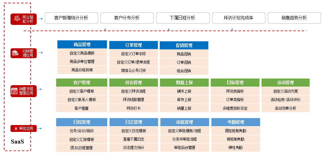 紅圈營銷+是一款兼顧通用協(xié)同辦公應用基礎上,主要為泛快消行業(yè)客戶提供客戶管理與銷售協(xié)同管理的客戶關系管理 SaaS 產(chǎn)品。產(chǎn)品具有進銷存管理、車銷管理、數(shù)據(jù)上報、營銷活動管理、目標管理等功能,幫助企業(yè)有效控制營銷費用和通路管理,提高銷售管理效率,為企業(yè)提供數(shù)據(jù)賦能,助力模式轉(zhuǎn)型。