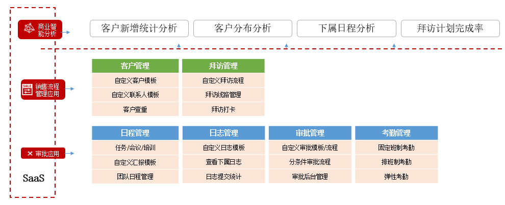 紅圈通是一款主要針對于通用行業(yè)的客戶管理與銷售協(xié)同管理 SaaS 產(chǎn)品,集合了客戶管理、拜訪管理、考勤、審批、日志、日程、數(shù)據(jù)分析等功能,滿足企業(yè)銷售自動化和辦公自動化的需求。