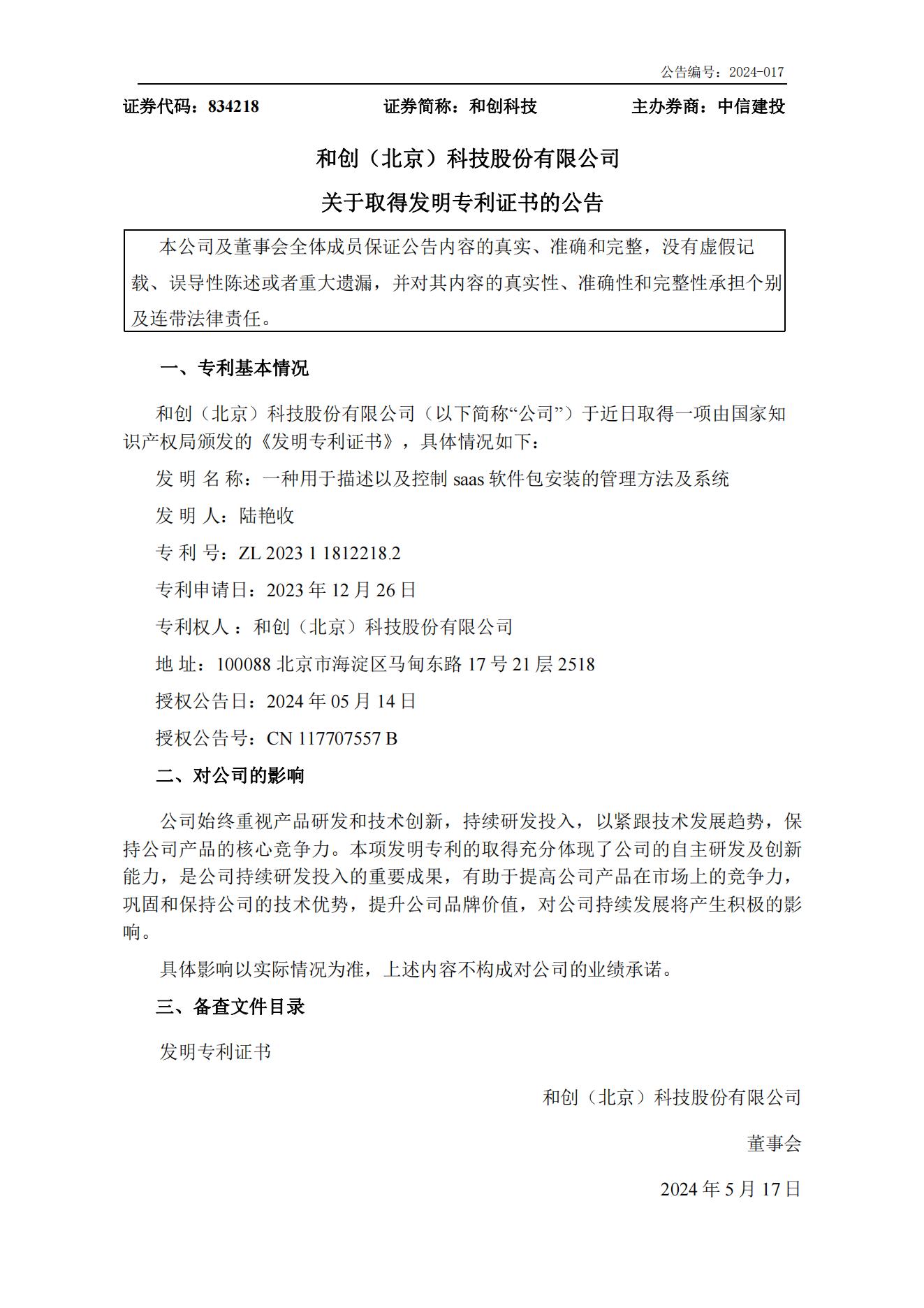 近日,我們又迎來(lái)了2024年的第三項(xiàng)發(fā)明專(zhuān)利!發(fā)明名稱(chēng)為:一種用于描述以及控制saas軟件包安裝的管理方法及系統(tǒng)