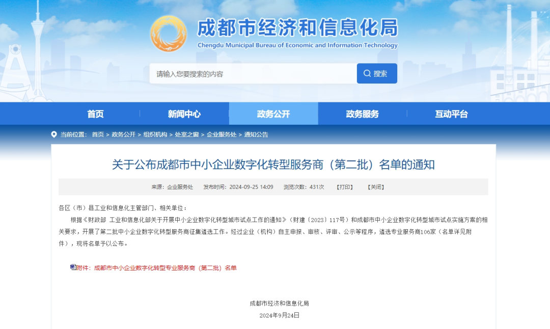 紅圈新聞?|?再入選成都!和創科技入選成都市第二批中小企業數字化轉型服務商