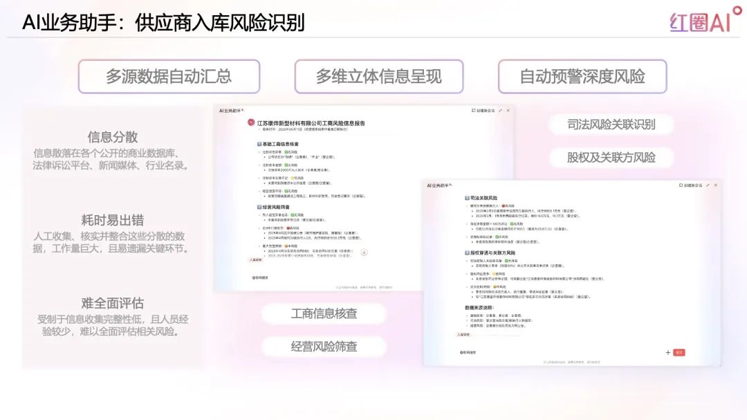 紅圈AI業務助手:秒級識別合約/供應商風險,智能處理文件,釋放員工潛能!