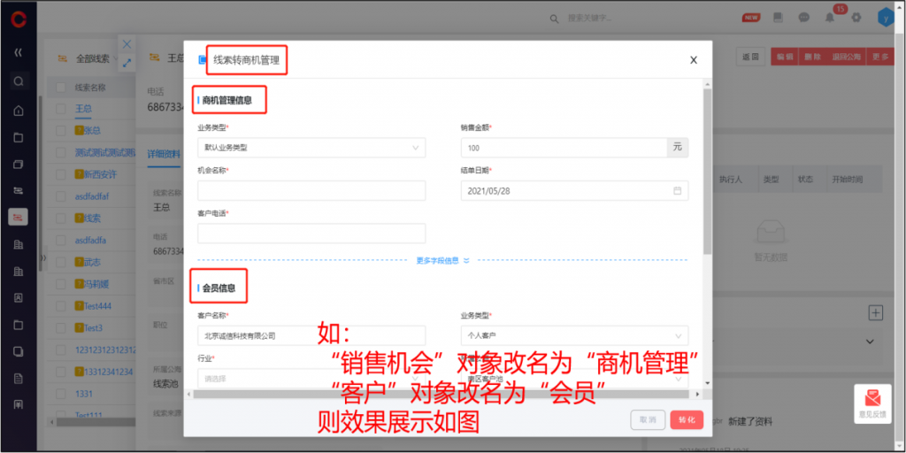 線索轉化頁面的標題和分組標題,按轉化的對象名稱來變化
