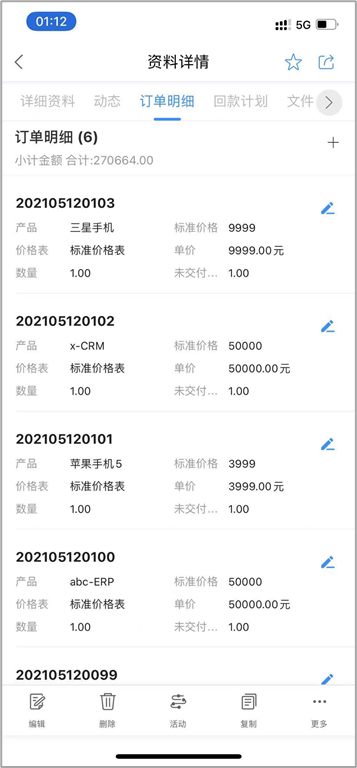 App端子對象列表顯示雙列:子對象組件中的字段會以兩列的方式進行展示,方便快速查看明細