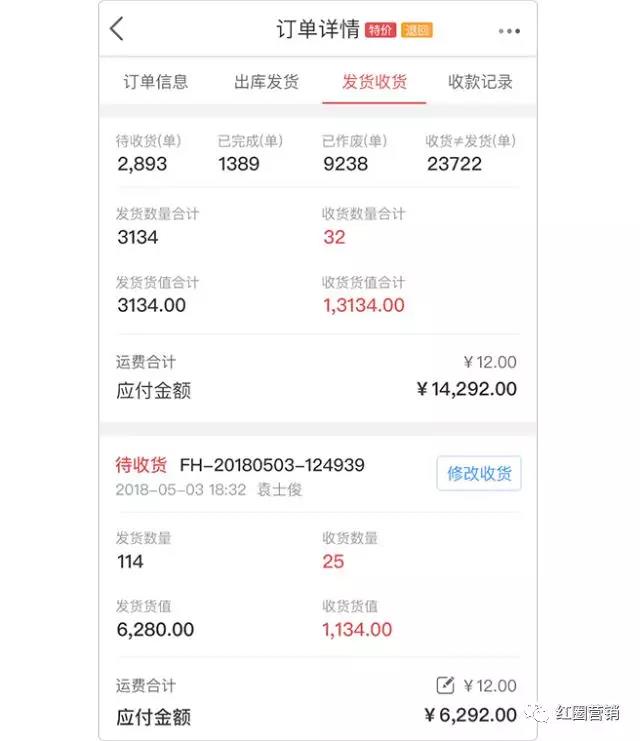 在出貨進(jìn)貨中,由于運(yùn)輸損耗等原因,企業(yè)發(fā)貨數(shù)量與客戶(hù)收貨數(shù)量不同的情況時(shí)有發(fā)生,為了便于處理類(lèi)似的情況,紅圈通特別在訂單詳情頁(yè)增加發(fā)貨收貨記錄,支持分別記錄發(fā)貨收貨數(shù)量、單價(jià)、金額。