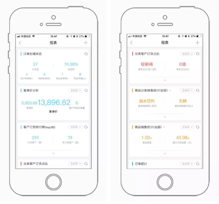 -新增訂單處理狀態(tài)、客單價(jià)分析、客戶訂貨排行榜、分類客戶訂貨占比、商品分類銷售占比、商品銷售統(tǒng)計(jì)、規(guī)格商品銷售統(tǒng)計(jì)共7種統(tǒng)計(jì)報(bào)表