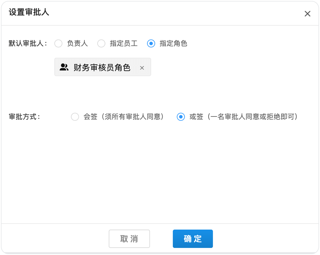 如果小王的公司對(duì)報(bào)銷(xiāo)把控比較嚴(yán)格,要求兩個(gè)財(cái)務(wù)審核同事全部同意后流程才能通過(guò),那么可以在后臺(tái)將他們?cè)O(shè)置成“多人會(huì)簽”。