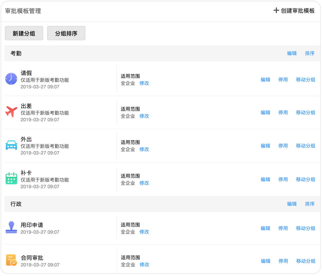企業(yè)可以通過(guò)自定義審批類(lèi)別和模板來(lái)規(guī)范審批的格式,并為所有審批進(jìn)行分組、排序,讓審批管理和使用都更加便捷。