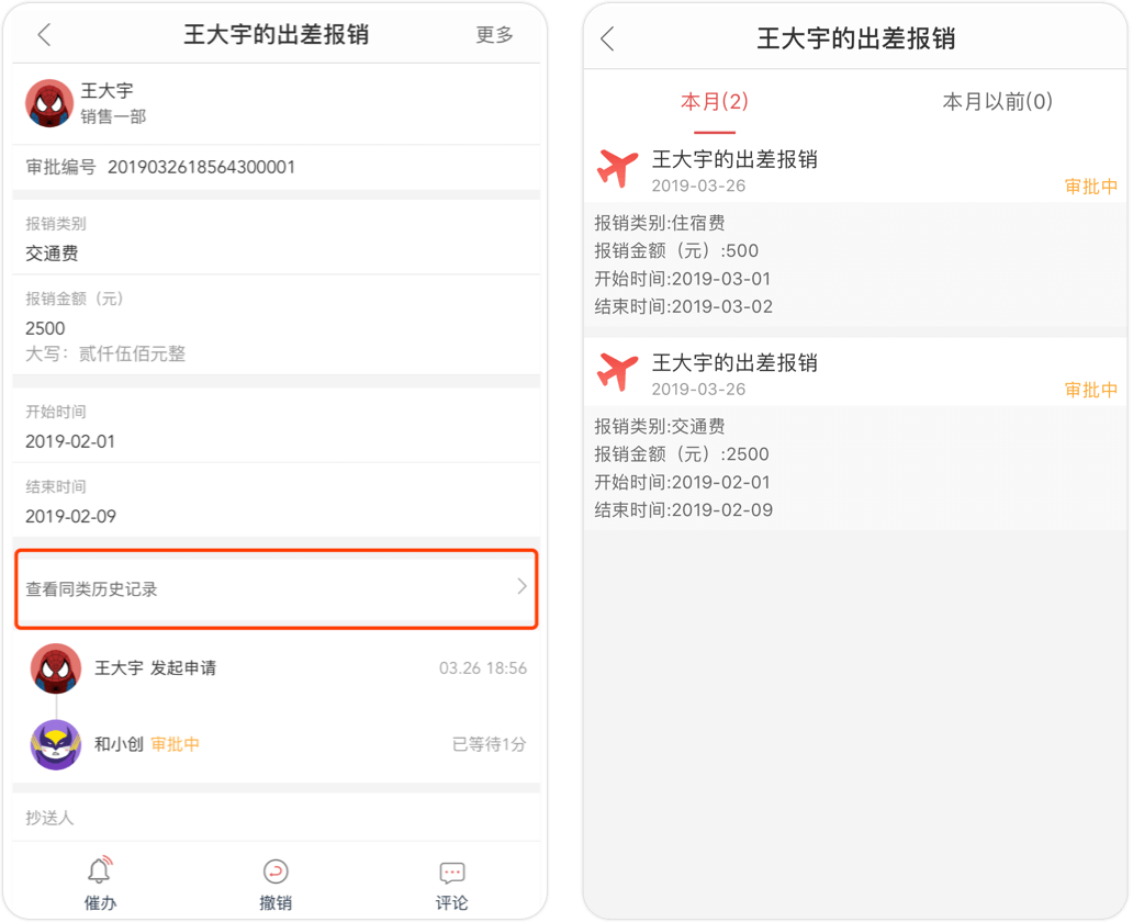 可查看同類(lèi)審批歷史記錄