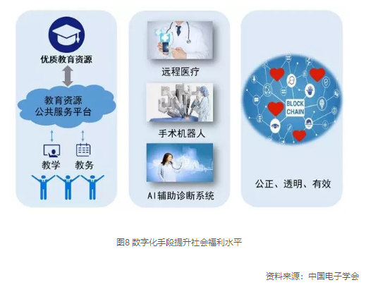 滿足人類對美好生活的向往和追求,是數(shù)字經(jīng)濟孕育、誕生、發(fā)展的重要動力及目標。大幅提升公共資源供給效率,顯著增強公共服務效用,進一步推動教育、醫(yī)療、慈善等公共事業(yè)的便捷化、普惠化、均等化,是數(shù)字經(jīng)濟在創(chuàng)新變革生產(chǎn)方式、促進實體經(jīng)濟提質增效之外的關鍵著力點和突破口。多種類型、多個領域的網(wǎng)絡化、智能化的教育資源公共服務平臺將被搭建,面向公眾持續(xù)擴大優(yōu)質教育資源覆蓋面。互聯(lián)網(wǎng)遠程診療將成為高頻次、低門檻、易得可選的常規(guī)醫(yī)療方式,并引入人工智能助手有效提升診療精準度,緩解全球性的醫(yī)療資源緊張難題。區(qū)塊鏈技術將在慈善資金募集和捐贈過程中得到大規(guī)模應用,強化互信關系,減少交易成本,溯源資金去向,保障慈善事業(yè)的公正、透明、有效。