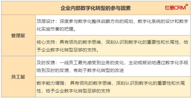 數(shù)字化轉(zhuǎn)型是一項(xiàng)需要長(zhǎng)期持續(xù)且異常復(fù)雜的工作,對(duì)于管理層而言,其主要作用是轉(zhuǎn)型的頂層設(shè)計(jì)和推動(dòng)支持。對(duì)于員工而言,需要增強(qiáng)自身的數(shù)字化相關(guān)能力并及時(shí)反饋。
