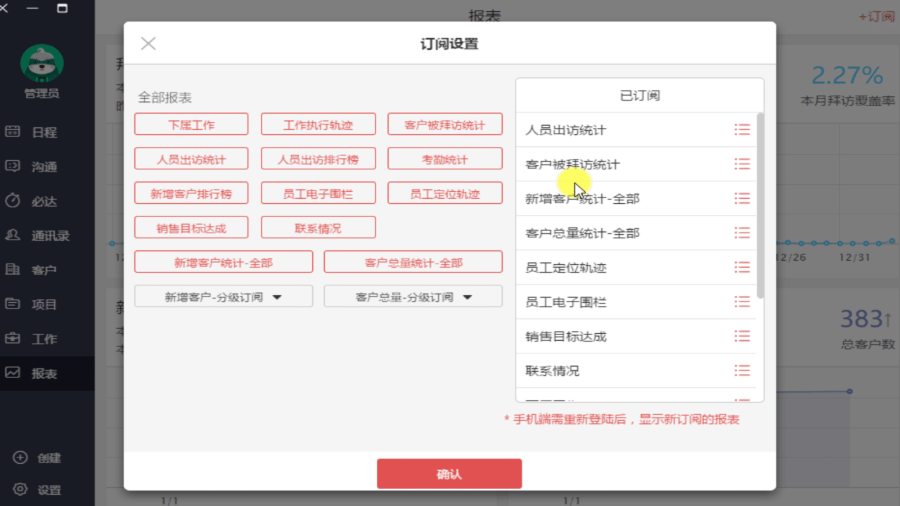 ? 通過「人員出訪統計」和「客戶被拜訪」報表中顯示的數據,你可以對員工的銷售過程分析,評估銷售員的銷售行為過程;