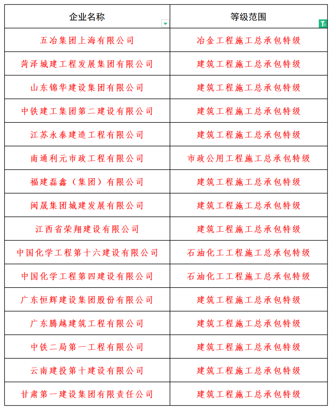 7月11日,住建部發布關于核準2023年度第六批建設工程企業資質名單的公告,其中16家建筑業企業“升特”: