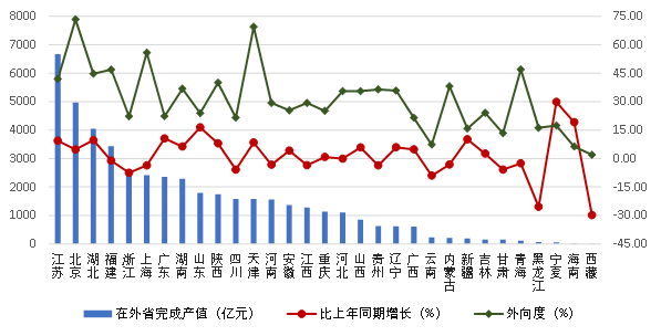(二)各地區(qū)在外省完成的建筑業(yè)總產(chǎn)值情況
