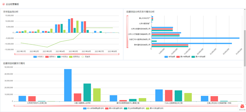 以紅圈工程項目管理系統為例,借助大數據、AI、BI等技術,助力工程企業將線下管理流程轉移到線上,項目全過程數據自動匯總并進行智能分析,動態經營報表隨時可見,管理層能夠清晰掌握成本、利潤、應收應付、當前產值等各項關鍵數據,批款有數據支撐,出現問題系統自動預警,早發現早調整,有效避免各類型的項目風險,真正做到事前、事中、事后的全面管理,提高企業整體的抗風險能力。