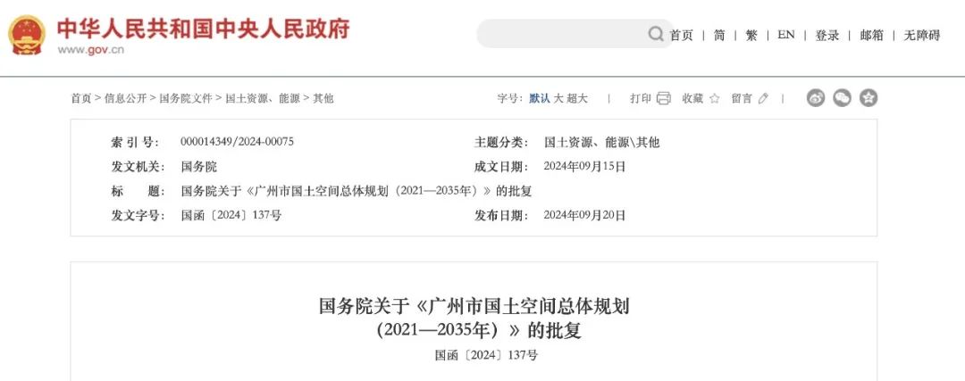 行業(yè)政策?|?國(guó)務(wù)院批復(fù)!廣州市國(guó)土空間總體規(guī)劃!