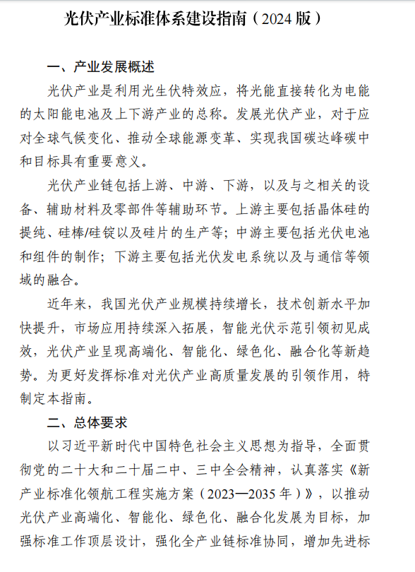 行業(yè)政策?|?工信部印發(fā)《光伏產(chǎn)業(yè)標(biāo)準(zhǔn)體系建設(shè)指南(2024版)》的通知