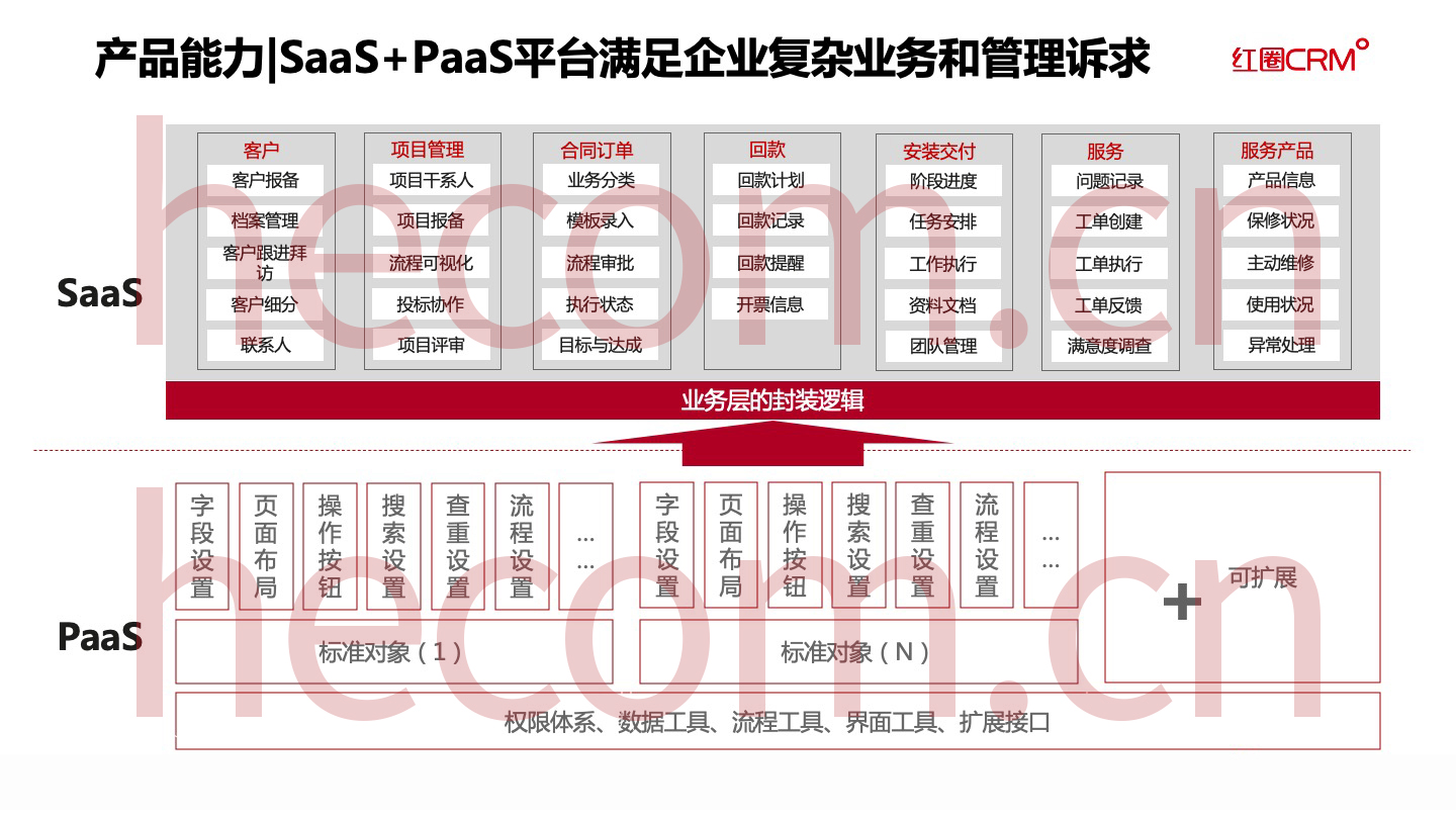 不同行業(yè)、不同類(lèi)型的企業(yè),其組織架構(gòu)、管理方式和業(yè)務(wù)流程也不盡相同。而且,隨著企業(yè)規(guī)模的不斷擴(kuò)大,客戶(hù)關(guān)系管理的復(fù)雜度也在不斷增加,企業(yè)的個(gè)性化訴求也會(huì)進(jìn)一步增多。因此,單純的SaaS軟件已經(jīng)不能完全適應(yīng)客戶(hù)的需求,在這種情況下,CRM的PaaS平臺(tái)便應(yīng)運(yùn)而生了。