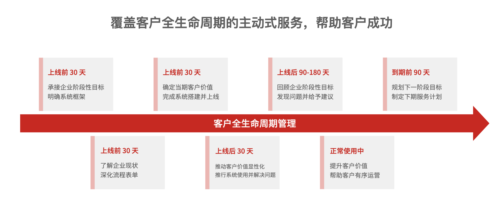 以客戶為中心的全生命周期管理,以 5-10 年企業(yè)經(jīng)營目標為導(dǎo)向的階段性價值兌現(xiàn),陪伴企業(yè)成長,助力企業(yè)實現(xiàn)數(shù)字化轉(zhuǎn)型